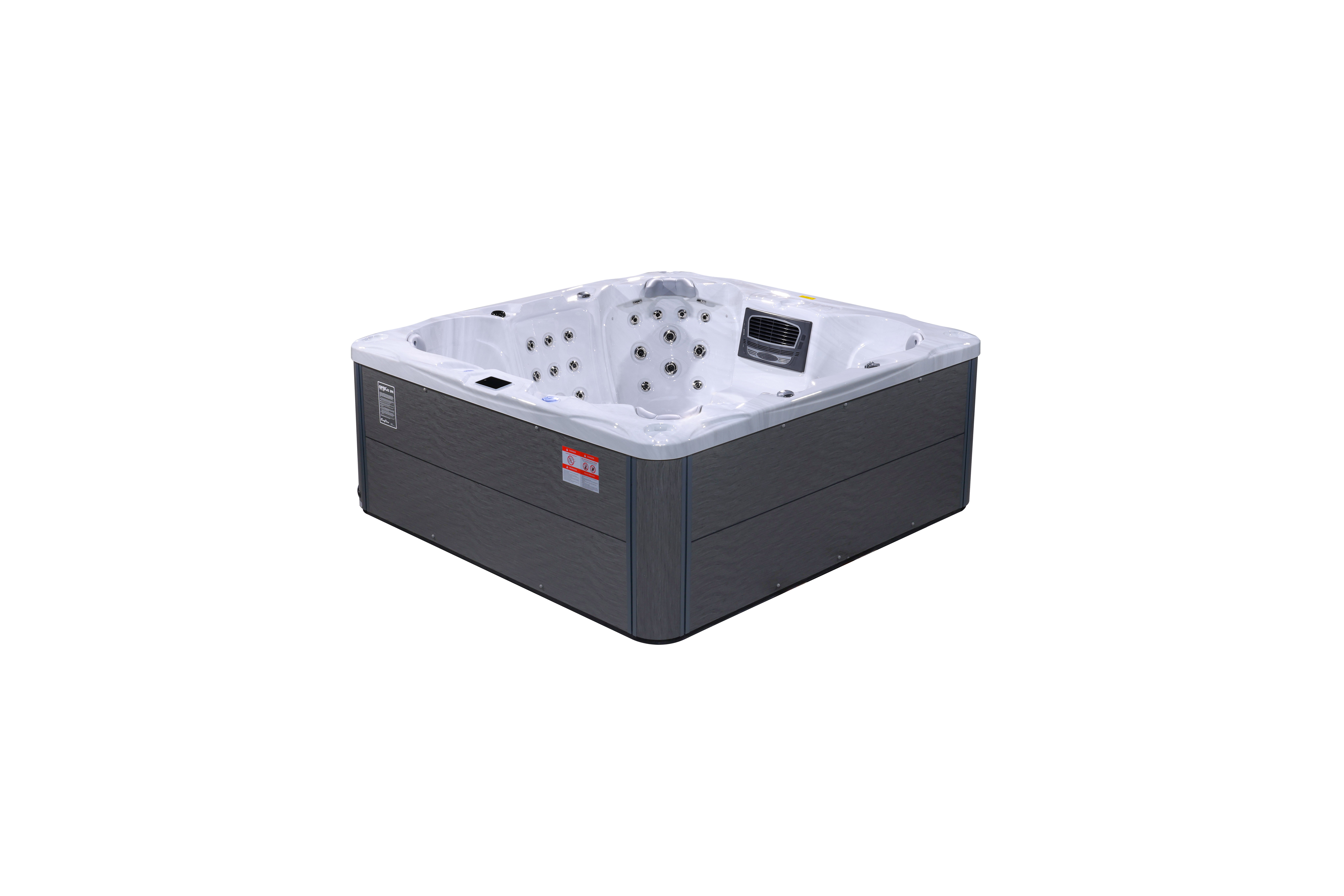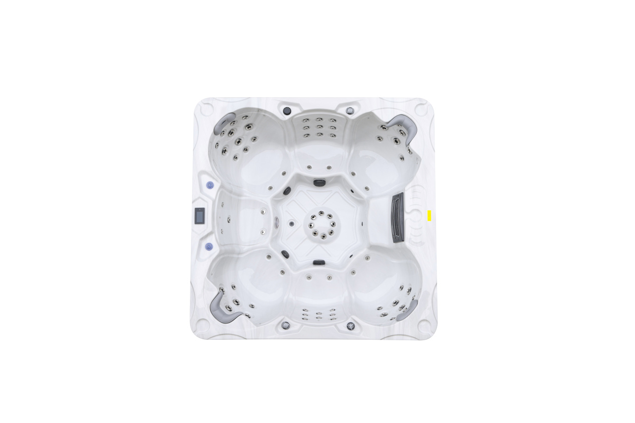 NordicSpa Khild с размером чаши 2,25 x 2,25 м идеально подходит для установки как в помещении, так и на улице. Самая просторная квадратная чаша в линейке с четырьмя эргономичными подголовниками комфортно вмещает до семи человек, создавая королевские условия для полноценного отдыха и общения.