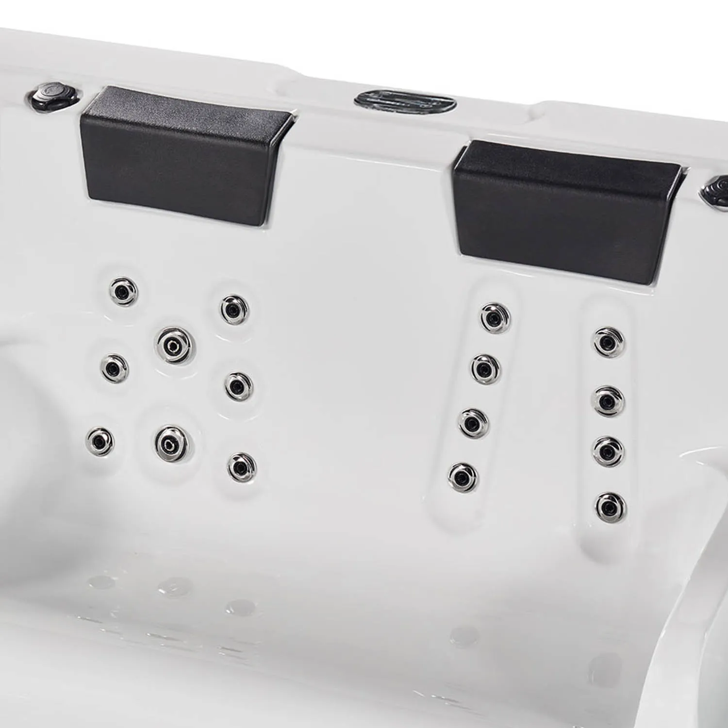• 23 массажных форсунок с регулировкой направления потока, 2 удобных подголовника и глубина 1430 мм для полного расслабления;