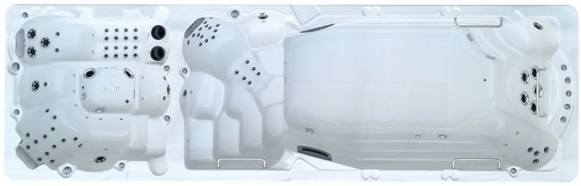 Это полностью готовое решение для тренировок и отдыха. Мощную систему гидромассажа, создающую невероятный комфорт в спа-зоне, обеспечивают 101 форсунка. Эффективный массаж и мощные водяные потоки создаются четырьмя производительными насосами: два насоса мощностью 2,2 кВт для спа-зоны, и два мощных насоса: 2,2 кВт и 2,9 кВт для плавательной зоны, что позволяет создать идеальное встречное течение для плавания.